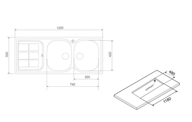 – ابعاد: ابعاد این سینک (کد 147) 120* 50 سانتیمتر است.