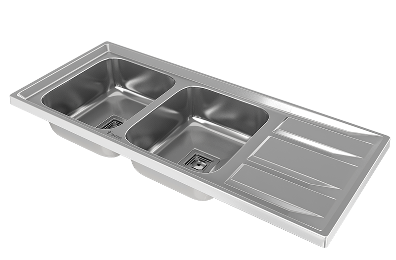 تعداد لگن: این سینک توکار دارای دو لگن متوسط با عمق 22 سانتی متر(نسبتا عمیق) میباشد.
