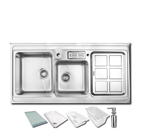 یکی دیگر از ویژگی های این مدل سینک اخوان، کیفیت ساخت بالا آن است. این سینک از جنس مواد با کیفیت و مقاومی ( استيل AISI 304) ساخته شده است که باعث ایجاد دوام و ماندگاری بالا در مقابل ضربه ها و خراش ها می شود. همچنین، این سینک دارای پوشش ضد لک و ضد خش است که به شما امکان می دهد آن را به راحتی تمیز کنید و درخشش طولانی مدت آن را حفظ کنید. این سینک ظرفشویی دارای قابلیت های جالبی نیز است. برخی از این قابلیت ها شامل دارا بودن یک لگن بزرگ و یک لگن کوچک با عمق 15.5 سانتیمتر، دارا بودن سبد ظرفشویی برای قرار دادن ظروف و لوازم آشپزخانه، دارا بودن سطحی صاف و ضد لک، و دارا بودن جا مایع و تخته گوشت شیشه ای و … است. همچنین، این سینک دارای سیستم ضد صدا است که از ایجاد صداهای ناخوشایند در هنگام استفاده جلوگیری می کند. در کل، سینک ظرفشویی اخوان مدل 362 با طراحی زیبا، مقاومت بالا، و قابلیت های منحصر به فرد، یک انتخاب عالی برای آشپزخانه شماست. با استفاده از این سینک می توانید به آسانی و به صورت کامل از وظیفه ظرفشویی خود پشتیبانی کنید و به دست آوردن آشپزخانه ای تمیز و زیبا کمک کنید.