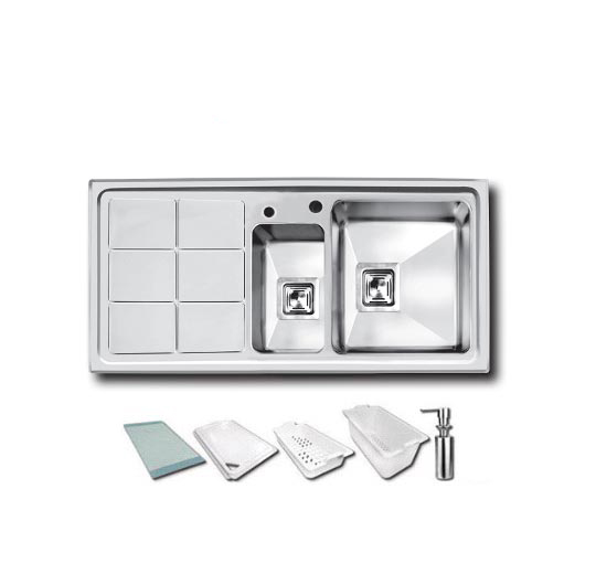 سینک 310 توکار اخوان دارای نصب آسان است و میتوانید آن را به راحتی در آشپزخانه خود نصب کنید. طراحی زیبا و ساده این سینک باعث میشود آشپزخانه شما ظاهری مدرن و شیک داشته باشد. این سینک در ابعاد 100*50 سانتی متر طراحی گردیده است. از متعلقات این سینک می توان به سبد کم عمق پلاستیکی باکسی ، جامایع، تخته گوشت شیشه ای، سبد میوه شور پلاستیکی باکسی، و تخته گوشت پلاستیکی باکسی نیز اشاره نمود.