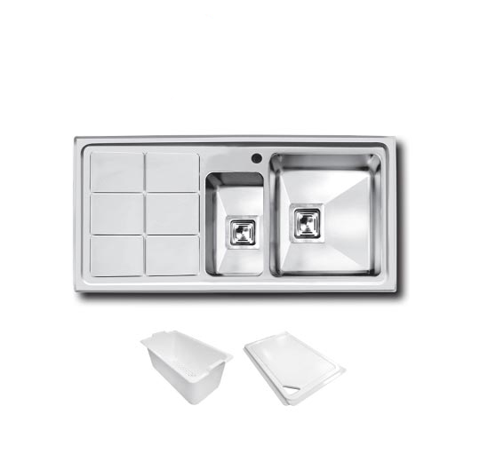 این مدل سینک دارای یک لگن با عمق 20 سانتی متراست که امکان شستشوی ظروف بزرگ را فراهم میکند. همچنین، دارای سطح آبگیری بزرگی است که به شما امکان میدهد ظروف را به راحتی در آن قرار داده و از ریزش آب به دستگاههای آشپزخانه جلوگیری کنید.