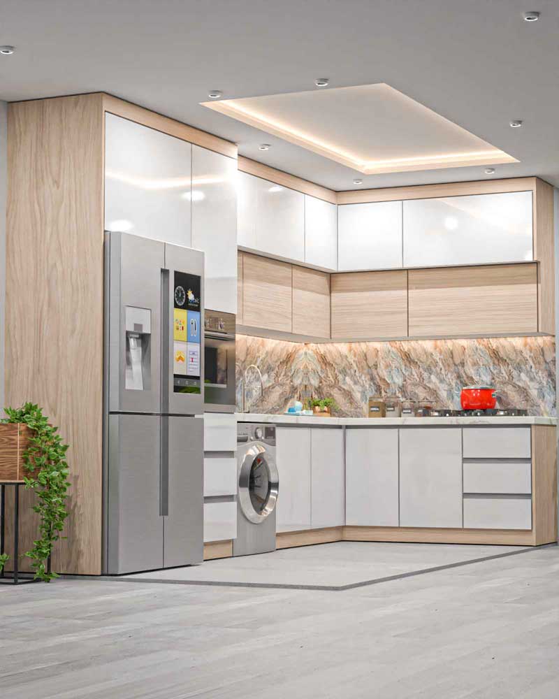 یک کابینت آشپزخانه مدرن باید دارای فضای ذخیرهسازی کافی برای لوازم آشپزخانه باشد. طراحی هوشمند و جا به جایی صحیح این فضاها میتواند به راحتی و کاربردی بودن آشپزخانه کمک کند.