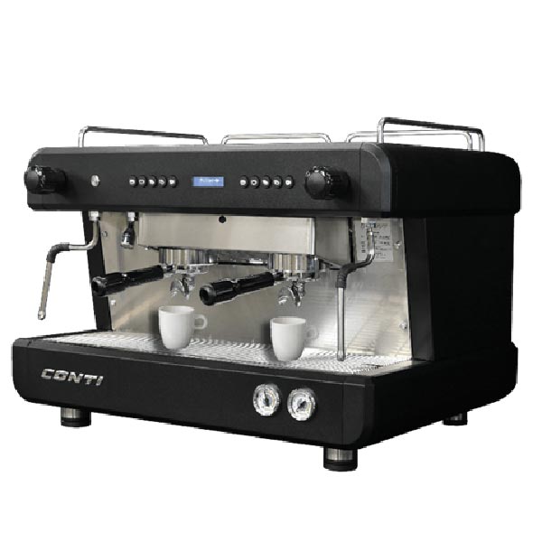 دستگاه اسپرسو ساز کنتی دو گروپ مدل CC200 با توان 3600 وات، دستگاهی خوب و با کیفیت برای کافه هاست. این اسپرسو ساز اتوماتیک است و می توان گفت همه ویژگی های یک اسپرسو ساز صنعتی را دارد. نخستین ویژگی اسپرسوساز صنعتی کنتی مدل CC200 دو گروپ، اتوماتیک بودن آن است